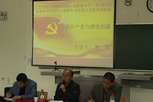 为了加强对入党积极分子和建党对象的培养教育,确保新党员发展的质量,4月12日下午,人世界杯体育官方网站分党校第28期入党积极分子、第5期发展对象培训班暨青年马克思主义培训班开班典礼在贺兰山校区文科楼132教室成功举行。学院党委书记、分党校校长鲁晋进行了以“中国共产党与理论创新”为主题的开班第一课。学院党委副书记金玉河,14级辅导员李斌及人世界杯体育官方网站56名入党积极分子、41名建党对象参加。典礼由学院党委副书记金玉河主持。