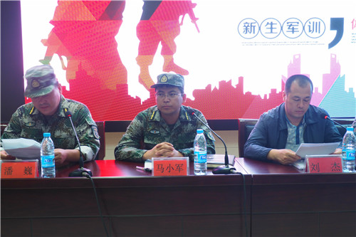 会上,主持人首先为大家介绍了2017级新生军训连长、指导员、副连长。随后,由军训团三营一连连长潘巍宣读军训建制、任命副连长及副指导员、班排长,并宣读了新生军训评奖评优标准及军训相关事宜。接着,新生代表2017级历史学(历史教育)班谢详康代表全体新生宣读军训决心书,大家一致表明受训学生坚决服从指挥,保证完成军训任务的决心。最后,马小军发表了热情洋溢的讲话,要求在座的新生要牢固树立和加强国防教育意识,鼓励同学们以饱满的热情迎接军训生活,发扬流血流汗不流泪的精神,并希望同学们严格要求自己,严守军训纪律,以军人的标准要求自己,做 “有灵魂 有本事 有血性 有品德”新时期合格 “四有”军人。动员会结束后,全体带队老师和学生观看了往届学院学生军训视频,对即将开启的军训有了直观的了解。