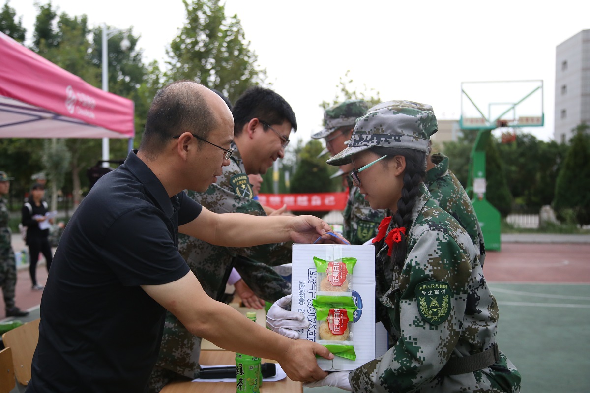 军歌嘹亮,唱响青春;正步雄风,英姿飒爽!限时15分钟的军被折叠充分展示了军被折叠方队娴熟的折叠技能,面对着整整齐齐的“豆腐块”,院领导们表达了高度的赞扬。队列会操口号响亮,整齐划一,赢得了领导们的充分肯定。一腔热血,齐诉人文情;一曲高歌,共唱《映山红》!随着前奏缓缓响起,清丽悠扬的独唱直击心间,随后的合唱低沉却又不失婉转,与独唱相互交织,回荡在训练场的上空,久不平息。之后,学院领导向军训教官和参训学生赠送慰问品。