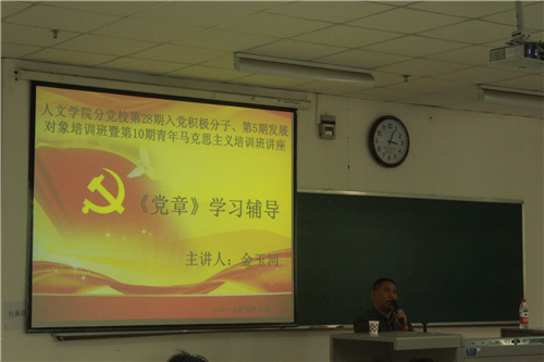5月3日下午,人世界杯体育官方网站分党校第28期入党积极分子、第5期发展对象培训班暨第10期青年马克思主义培训班党章学习辅导讲座在贺兰山校区文科楼132教室成功举行。学院党委副书记金玉河老师主讲,学院56名入党积极分子、41名建党对象参加。