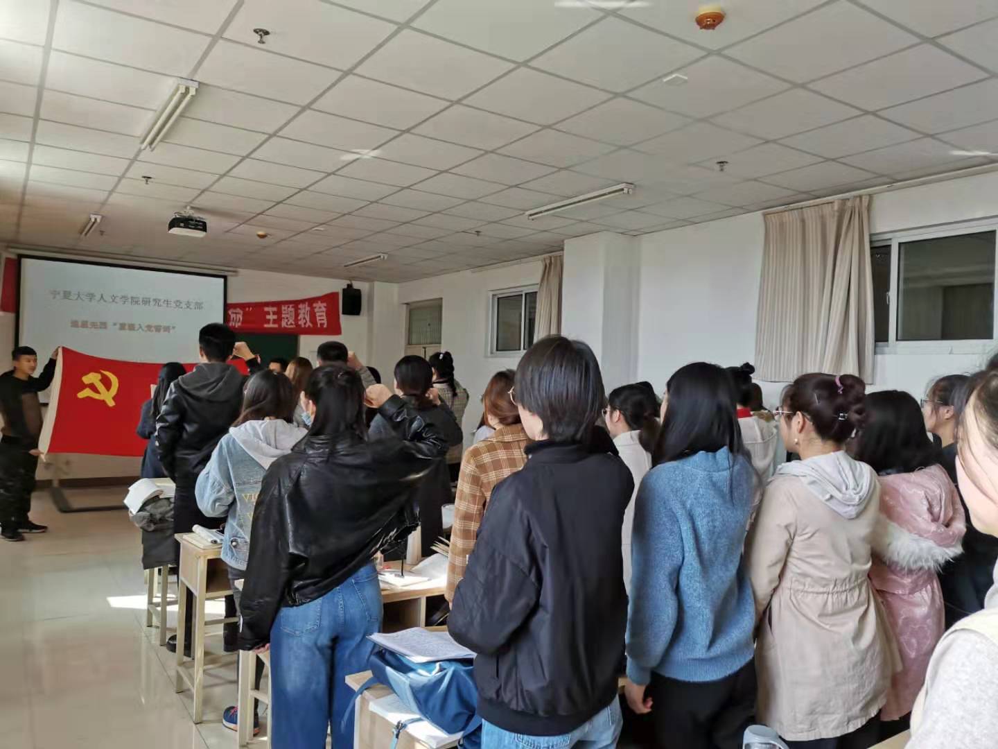 为了丰富“不忘初心、牢记使命”主题教育的形式及内涵,10月16日下午,人世界杯体育官方网站研究生党支部全体党员在文科楼717教室举行重温入党誓词宣誓和观看爱国电影活动。