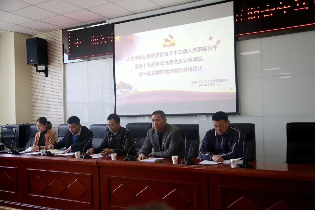 10月16日下午,人世界杯体育官方网站分党校第三十三期入党积极分子培训班暨第十五期青年马克思主义培训班、第十期发展对象培训班开班仪式于贺兰山校区文荟楼309会议室举行。本次会议由学院党委副书记金玉河主持,学院院长胡玉冰、党委副书记马小军、辅导员潘巍、余晓玲及第三十三期入党积极分子、第十期发展对象参加。
