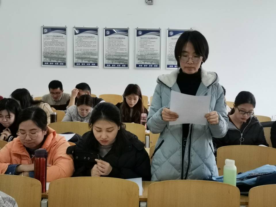 其次,史春燕老师组织大家集中学习《中国共产党第十九届中央委员会第四次全体会议》精神,特别强调要坚持马克思主义在意识形态领域指导地位的根本制度,注意区分政治原则问题、思想认识问题、学术观点问题,旗帜鲜明反对和抵制各种错误观点。指出全体党员都应该学习贯彻会议精神,自觉统一思想与行动,真正在学懂弄通上下到功夫。