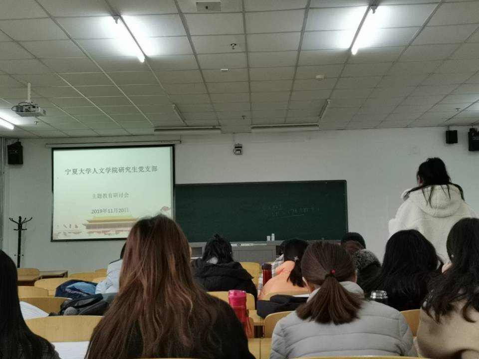 为深入贯彻落实“不忘初心、牢记使命”主题教育思想,11月20日下午,人世界杯体育官方网站研究生党支部全体党员于贺兰山校区文荟楼105教室开展了主题教育学习系列活动。