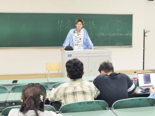 姜祉旭同学与大家进行了简单的知识互动,详细介绍了毒品的危害,分享了自己的亲身经历,最后以禁毒宣传片作结。唐英乔同学从毒品种类及吸食毒品的危害两个角度入手,强调了本次主题班会的重要性和必要性,并组织同学们学习了相关的法律法规。