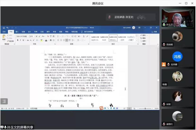 2021年11月10日下午14点30分,人世界杯体育官方网站于腾讯会议平台举行了“谈几个汉字及其折射的文化”的学术讲座。本次讲座特邀北京大学中文系教授、北京文献语言与文化传承研究基地学术委员会主任、中国修辞学会副会长,中国训诂学会副会长,中国音韵学会副会长孙玉文老师主讲。讲座由人世界杯体育官方网站副院长刘鸿雁主持,人世界杯体育官方网站部分教师、研究生参加了本次讲座。