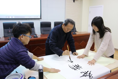 讲座最后,由胡玉冰院长代表人世界杯体育官方网站向史金波先生赠送了人世界杯体育官方网站学术成果系列著作,史先生即兴书写西夏文墨宝回赠人世界杯体育官方网站,现场气氛融洽。