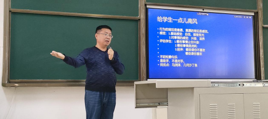 讲座伊始,杨杰老师以幽默诙谐的语言讲述何为“南风效应”,引起了学生的广泛参与,讲座气氛热烈,在培养学生人文素养的同时,为学生埋下一颗人文精神的种子。