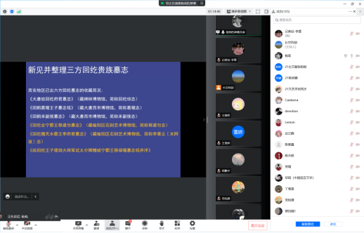 李浩老师以《大唐故安优婆姨塔铭并序》全图拓片作为切入点,讲述了此项学术研究的前期准备工作,通过实地走访,并结合辛维廉教授对粟特文的研究,深入分析其汉文材料。前期准备工作也取得了可喜的阶段性成果,相关的学术成果部分刊载于中国社会科学报,收录于《文献》杂志,并著书出版《摩石录》等。李浩老师及其团队克服了研究过程中存在的问题,如外族语言的转译工作,双语问题等。此外,李老师通过举例说明近几十年西安周边出现的双语墓志,并根据墓志中语言体系的先后排列顺序,指出粟特文和汉语的历史变迁。