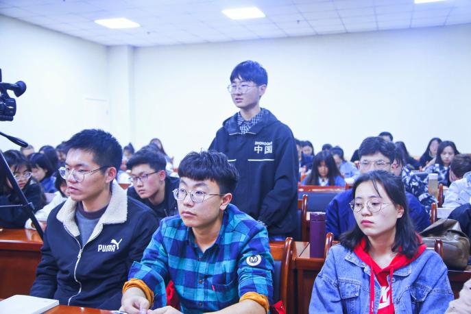 讲座伊始,丁峰山向大家简要介绍了多洛肯教授,直言其胸有丘壑、博学多才,在文学方面颇有建树。随后,多洛肯详细讲述了人性中的文学、文学中的人性,引人深思。他将人性与文学融为一体,还原历史场景,体察世道人心,带领大家切身体会中国古代诗人和文学家的文学性与人性。多洛肯旁征博引,使大家由浅入深地接触、感悟文学和人性的关系。多洛肯指出“文学美感”是有它自己的一个发展历程,作家的情感是文学美感发展的体现。在先秦时期个人意识发展缓慢,强调群体是非常普遍的一种社会情感,随着社会进步,文学美感伴随着个人意识的觉醒进一步发展。接着,多洛肯阐述了文学美感和文学形式的重要性,他通过分析《红楼梦》中“宝”、“黛”、“钗”三人的爱情纠葛,深入地讲解了文学的基本功能。多洛肯表明文学作品带给读者的教育意义是其次,文学的基本功能重在把美感带给读者。讲座期间,同学们积极与多洛肯教授互动,现场大家思维碰撞不断、情绪激昂。最后,丁峰山进行总结发言,其中他强调“文学反映人性”这一论述,指出其深刻性及哲理性。