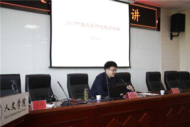讲座伊始,韩教授结合自身研究为同学们分析了2017年中国文学研究的时代语境和自身规律。他从学术会议、学术论文、学术专著三个方面观察总结了2017年稳定中有推进,守正中有创新的中国文学研究态势,并将其归纳为6大热点--内涵的再思考、基本文献整理研究、对文学经典的回归、制度与文学关系、文体研究、文本(抄本)研究。接着,他对“对中国文学内涵外延的重新思考”、“基本文献整理研究”和“对文学经典的回归”等热点进行了详细的讲解。其中他提到了当下西方话语体系对中国研究的弊端、出土古物所引发的学术思考以及德国科隆大学博士柯马丁以古希腊诗学为楔子引入的中国早期文本作者缺失的现象等概括面广泛的问题。同学们凝神静听,讲座现场气氛和谐。临近尾声,王永教授对本次讲座做了总结,他用“浅入深出”、“视野开阔”和“高屋建瓴”来表达自己的感受。之后的现场提问非常热烈,韩教授对同学们所提的问题进行了详细的解答。