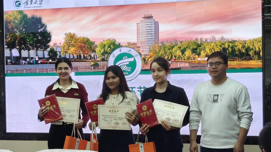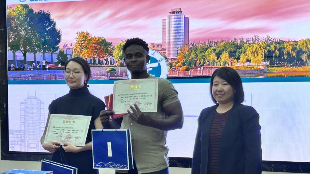 经过紧张的分数汇总与奖项评选,结果最终揭晓:世界杯体育官方网站乌兰格(蒙古)荣获一等奖,姆西罗(赤道几内亚)、张娜(俄罗斯)获得二等奖,倪思琳(摩洛哥)、许燕美(印度尼西亚)、王爱莎(土库曼斯坦)斩获三等奖,陶氏玄(越南)、艾小美(吉尔吉斯斯坦)、闫敏(埃及)、艾琳(吉尔吉斯斯坦)、甜甜(埃及)获得优秀奖。三位评委老师和国际中文教育系闫慧颖老师为获奖者颁发了荣誉证书和奖品,这不仅是对获奖留学生学术成果的认可,更是对他们努力付出的鼓励。