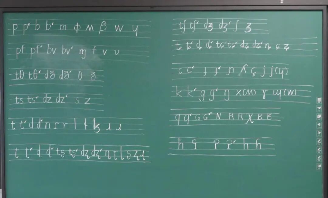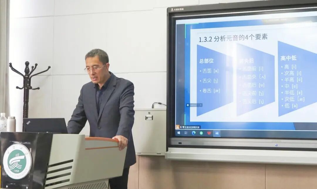 宁夏师范大学朱富林教授以“听、辨、记”为核心,开展沉浸式教学。课程以国际音标的听音记音切入,详细讲解了国际音标每一个音标的发音方法和发音特点。为了学员能够更加清楚地体会每一个音标的发音细节,通过播放方言样本,引导学员逐字标注音标,并对辅音、复元音、鼻化元音等难点做了强调。4月27日下午的“听音盲测”环节中,学员们通过在有限的时间里准确记录随机播放的多组国际音标和方言词汇音标,极大提升了听辨敏感度与记音效率。