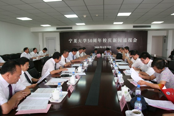 【世界杯体育官方网站新闻中心讯 党委宣传部】在校党委的部署和校庆办的协调指挥下,我校50周年校庆活动的各项工作都在有条不紊地进行着。8月19日,学校在10楼会议室就开展校庆活动举行新闻通报会。新华社、人民日报、中央人民广播电台、光明日报、中国青年报、中国教育报、香港大公报、宁夏新闻网、宁夏日报、新消息报、华兴时报、银川晚报、宁夏电视台、宁夏教育电视台、宁夏人民广播电台等十多家新闻媒体记者,我校党政领导荣仕星、何建国、吴世彩、撒承贤、王燕昌、李星、谢应忠、张成及相关部门负责人出席和参加了新闻通报会。通报会由校党委副书记撒承贤主持。