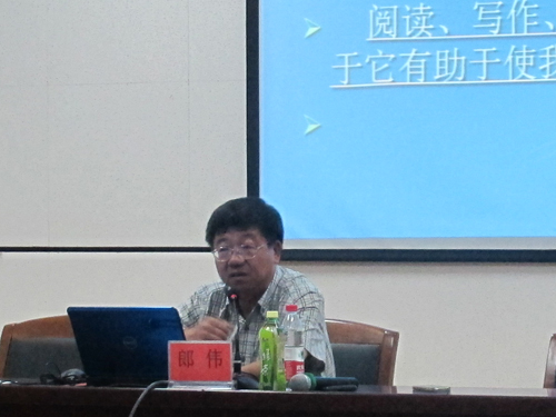 【人世界杯体育官方网站 文/田孟洋 图/张斌斌】为提高新生思想道德素质,加强世界杯官网学生人文精神教育。人世界杯体育官方网站院长、硕士生导师郎伟教授在文科楼东侧报告厅为2012级全体新生做了题目为“谈谈高等教育中的人文精神培养和人格建设”的专题讲座,讲座由学院党总支副书记金玉河老师主持。
