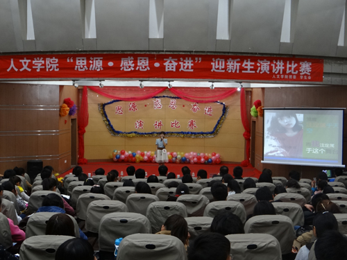 【人世界杯体育官方网站讯 文/崔源 图/马金玲 】为加强学院精神文明建设,提升学院人文精神,丰富大学生校园文化生活, 10月31日,人世界杯体育官方网站2012级 “思源·感恩·奋进”迎新生演讲比赛决赛在B区逸夫图书馆报告厅成功举办。