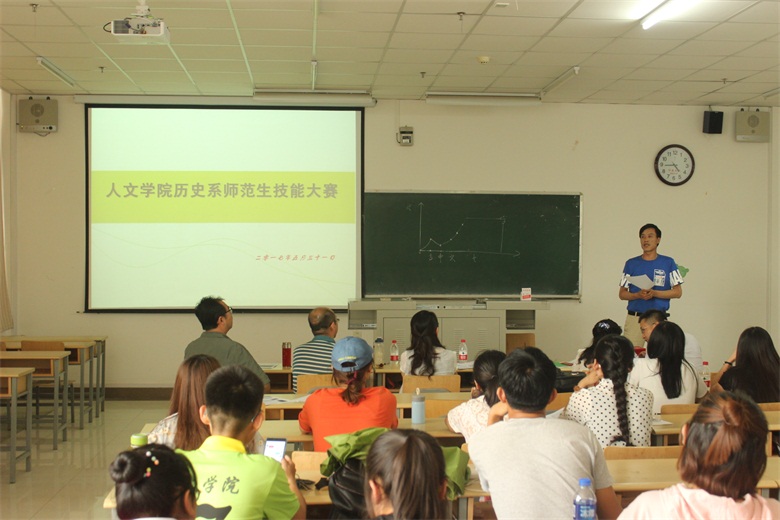 为进一步增强师范生实践应用能力,彰显师范特色,强化学生教学技能,5月31日人世界杯体育官方网站历史系在贺兰山校区文科楼404教室举办了师范生教学技能大赛决赛。本次大赛特邀世界杯体育官方网站附属中学副校长中学历史高级教师高正荣担任评委组组长,人世界杯体育官方网站副院长刘鸿雁、副院长杨浣、历史系王朝海副教授、刘莉教授、张新军副教授担任评委。会议由历史系主任王朝海主持。人世界杯体育官方网站2014、2015级历史学(教师教育)专业本科生观摩了此次比赛。