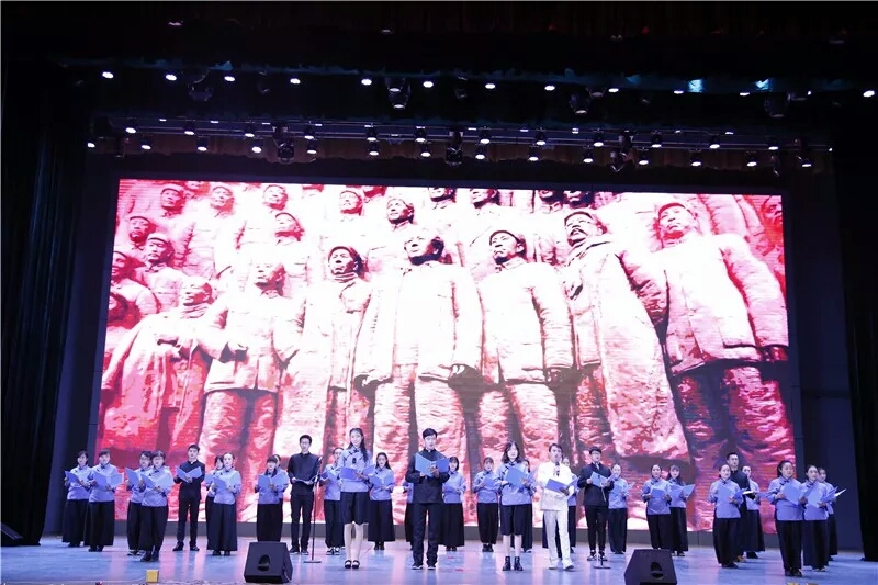 表彰大会结束后,迎新生文艺演出在充满传统文化的舞蹈《剪纸姑娘》中拉开帷幕。唯美的音乐、明快的节奏,彰显着青春的活力。在第一篇章“琼秀宁大,碧窗菲花”中,诗朗诵《辉煌中国》带领同学们遨游在二十四史的九曲回肠之中,用心表达出了中国梦的伟大诗篇,传递了宁大学子热爱祖国、圆梦中华的情怀。文学之昌盛、人物之俊彦,与民族患难与共,尤以金陵为最。2017级文秘班的同学们用舞蹈剧《金陵十三钗》把同学们带回了80年前的南京,让同学们在领略秦淮凄美的同时,引发了对国家民族兴亡深深的思考。一只袅袅婷婷的舞蹈《风筝误》,瑞彩翩跹、衣袂翩翩地将大家引入第二篇章“尘谢芳华,春绽新芽”。舞蹈剧《北冥有鱼》用唯美摇曳的舞姿展现了蓬勃之美,行云流水地为大家奏响了歌颂初生的诗篇。由马正亮、胡玉冰、马小军、王岩森、刘鸿雁、杨浣带来的诗朗诵《青春宁大》奏响了本场晚会的最强音。“为天地立心、为生明立命、为往圣继绝学、为万世开太平”,这是教育工作者筚路蓝缕、以启山林的责任与担当,是宁大人孜孜以求、锲而不舍的价值选择!第三篇章“尘谢芳华,春绽新芽”伴随着充满动感的曳步舞《“曳”幕降临》迸发出强力的乐章。压轴的秦腔《打镇台》选段与京剧《梨花颂》串烧为同学们带来了全新面貌的古典戏曲,带领全体同学领略了传统文化之美。相聚难得别亦难,洋溢着民族风情的舞蹈《喜相逢》以豪迈潇洒的舞姿,为本次晚会画上了圆满的句号。