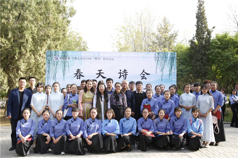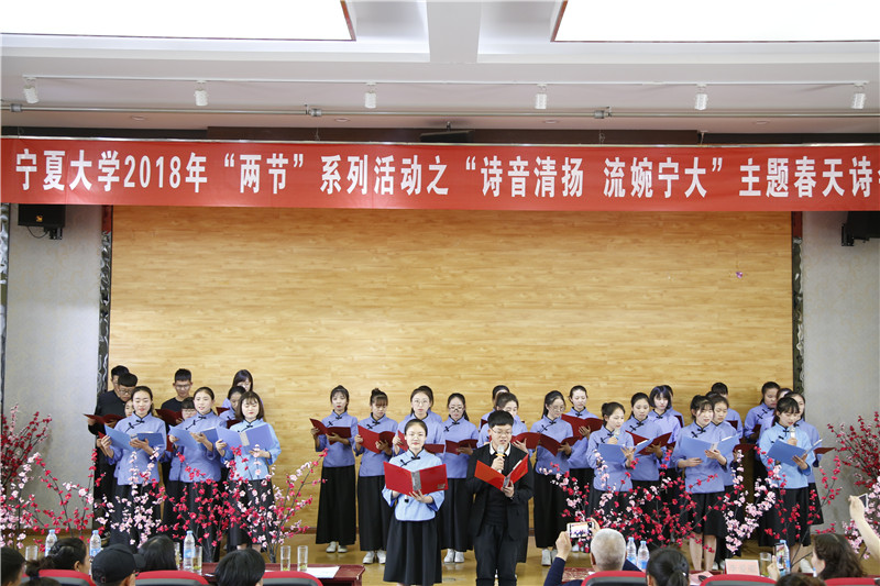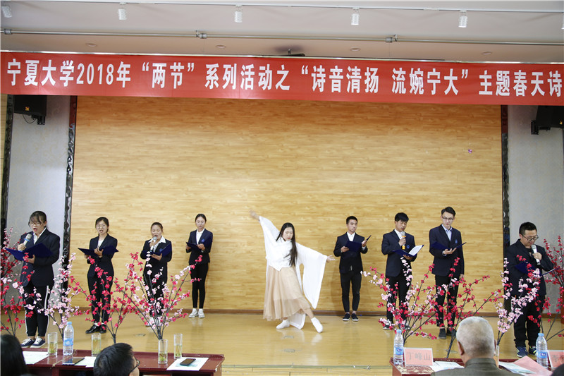 风情披肩,相约宁大;春韵风致,天清人集。4月21日下午,由世界杯体育官方网站共青团委员会主办,人世界杯体育官方网站团委学生会、世界杯体育官方网站雨巷文学社承办的两节系列活动、人世界杯体育官方网站读书节系列活动、宁夏高校文学艺术会巡回诗会之“春天诗会”于怀远校区英才报告厅成功举办。本次诗会特邀了世界杯体育官方网站校团委副书记冯学文、人世界杯体育官方网站党委副书记马小军、中文系主任丁峰山、雨巷文学社指导教师王琳琳、宁夏朗诵学术学会会员马利荣、汪伟民及银川市朗诵艺术协会理事李爱荣出席,世界杯体育官方网站雅寒国学社、咖啡屋、大益爱心茶室、时尚形象礼仪社、三人行书画协会、北方民族大学白鹭诗社、宁夏警官职业学院清朗书社、宁夏高校文学艺术会会员社团人员以及人世界杯体育官方网站的部分教师和学生参加。