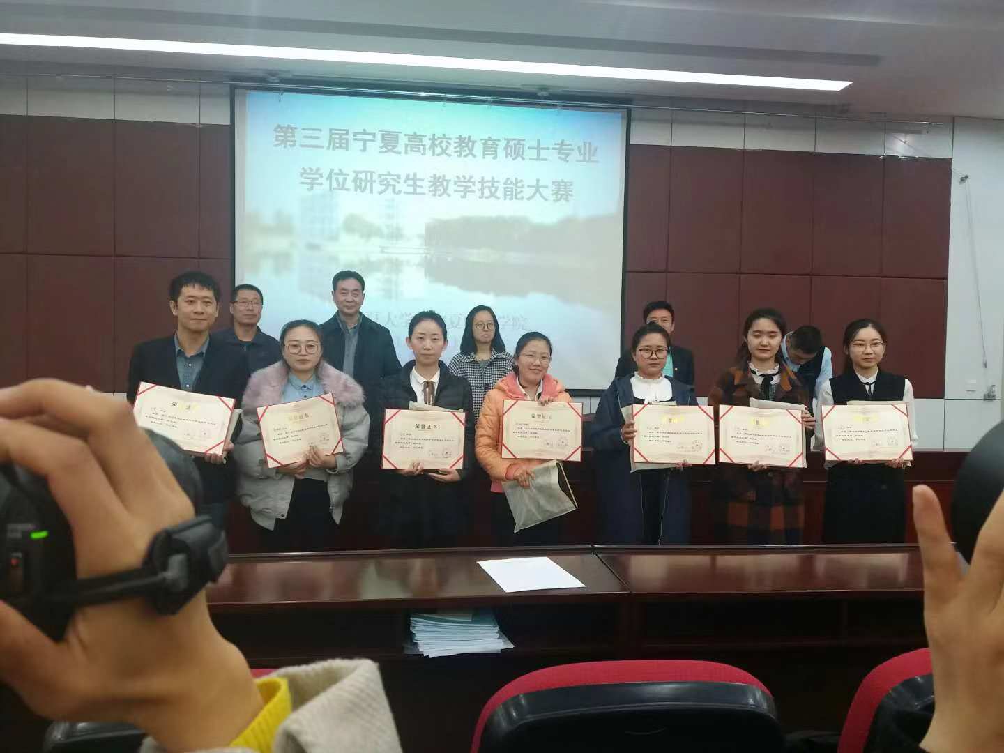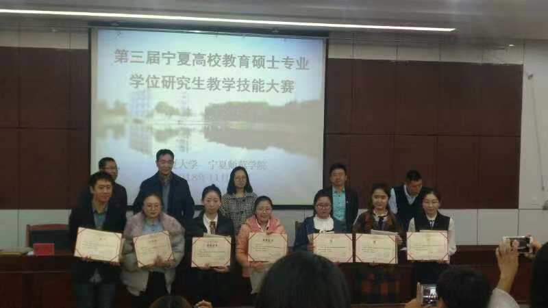2018年11月14日,由世界杯体育官方网站和宁夏师范学院联合举办的“第三届宁夏高校教育硕士专业学位研究生教学技能大赛”总决赛在我校研究生院怀远楼举行。人世界杯体育官方网站2018级学科教学(语文)研究生李阿康、2017级学科教学(语文)研究生刘玲、2018级学科教学(语文)研究生刘泽在比赛中表现出色,分别荣获一等奖、三等奖和优秀奖,李九华老师荣获优秀指导教师奖。