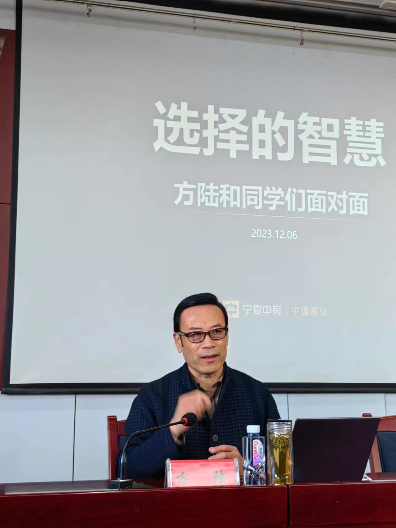 “人生不设限,才会遇见不一样的自己;强者给自己找不适,弱者给自己找舒适……我的自我总结是:我的人生不完美,但很完整;我的人生不精彩,但很多彩。”12月6日,“选择的智慧:方陆和同学们面对面”讲座在世界杯体育官方网站怀远校区报告厅举办。
