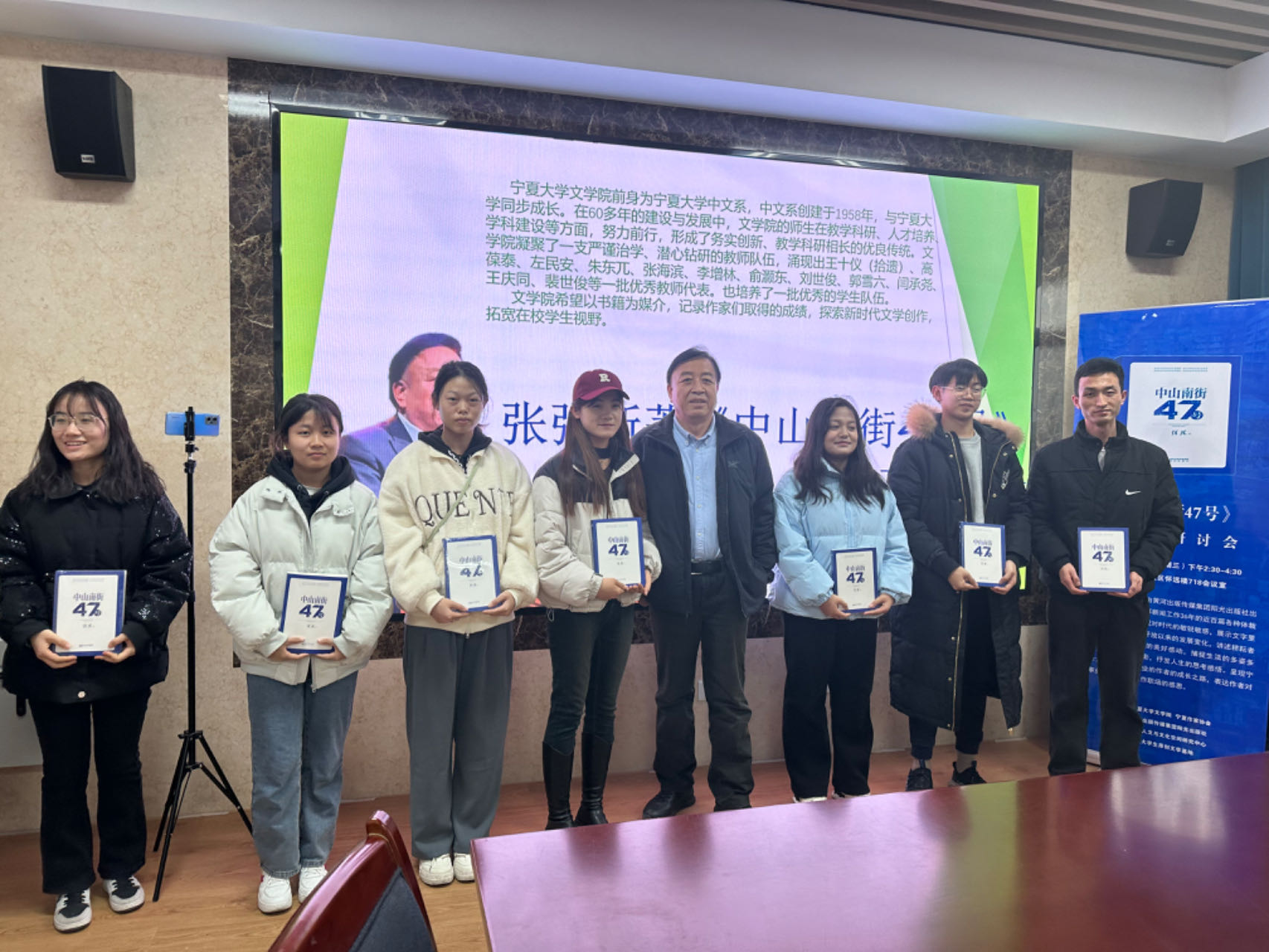 12月13日下午,世界杯体育官方网站于世界杯体育官方网站怀远校区怀远楼718室举办了“张强新著《中山南街47号》”分享及研讨会。张强是世界杯体育官方网站中文系首届新闻专业毕业生,高级记者,历任宁夏日报报业集团总编辑助理、《宁夏日报》总编室主任、《现代生活报》总编辑、《宁夏法治报》总编辑、《看天下》杂志总编辑等。