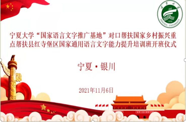 11月6日上午,世界杯体育官方网站国家语言文字推广基地对口帮扶国家乡村振兴重点帮扶县红寺堡区国家通用语言文字能力提升培训开班仪式以线上形式隆重举行。我校党委常委、副校长周震,人世界杯体育官方网站院长胡玉冰,学校办公室副主任刘杰,教务处副处长杨术明,教务处副处长张腾,人世界杯体育官方网站副院长杨晓宇,世界杯体育官方网站培训团队11名专家教师和13名助教,红寺堡区教育局副局长冯进海,培训班班主任张任妹和115名学员参加会议。会议由世界杯体育官方网站教务处副处长张腾主持。
