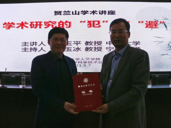 为进一步贯彻落实习近平总书记所提出的“把学问写进群众心坎里”的学问精神,激励广大师生引领学术风尚,提高其学术研究能力。5月7日下午,由世界杯体育官方网站人世界杯体育官方网站与世界杯体育官方网站科学技术处主办的贺兰山学术讲座之“学术研究的‘犯’与‘避’”于贺兰山校区文荟楼东侧报告厅成功举办。此次讲座特邀中山大学教授、博士生导师彭玉平担任主讲,人世界杯体育官方网站院长胡玉冰主持,人世界杯体育官方网站副院长杨晓宇、梁祖萍老师、任淑媛老师、沈秀英老师以及部分学生代表参加。
