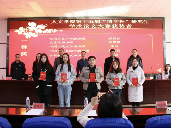 颁奖环节结束后,由党瑞同学主持学术论文报告会。中国古典文献学专业2018级研究生林光钊、中国古代文学专业2017级研究生桑迪、学科教学(语文)专业2019级研究生王婵、文艺学专业2019级研究生李甜嘉、专门史专业2019级研究生乔雅、汉语言文字学专业2019级研究生郑柳君分别作了题为《国家图书馆藏明刻本〈虚舟集〉考略》《〈封神演义〉神兽考》《于漪“语言和思维训练核心说”的解读与意义探究》《“闲寂”与“虚静”——中日文艺审美范畴比较》《〈陕西舆图〉成图年代考》《〈春秋左传正义〉引〈说文〉被训字异同考辨》的学术论文报告。