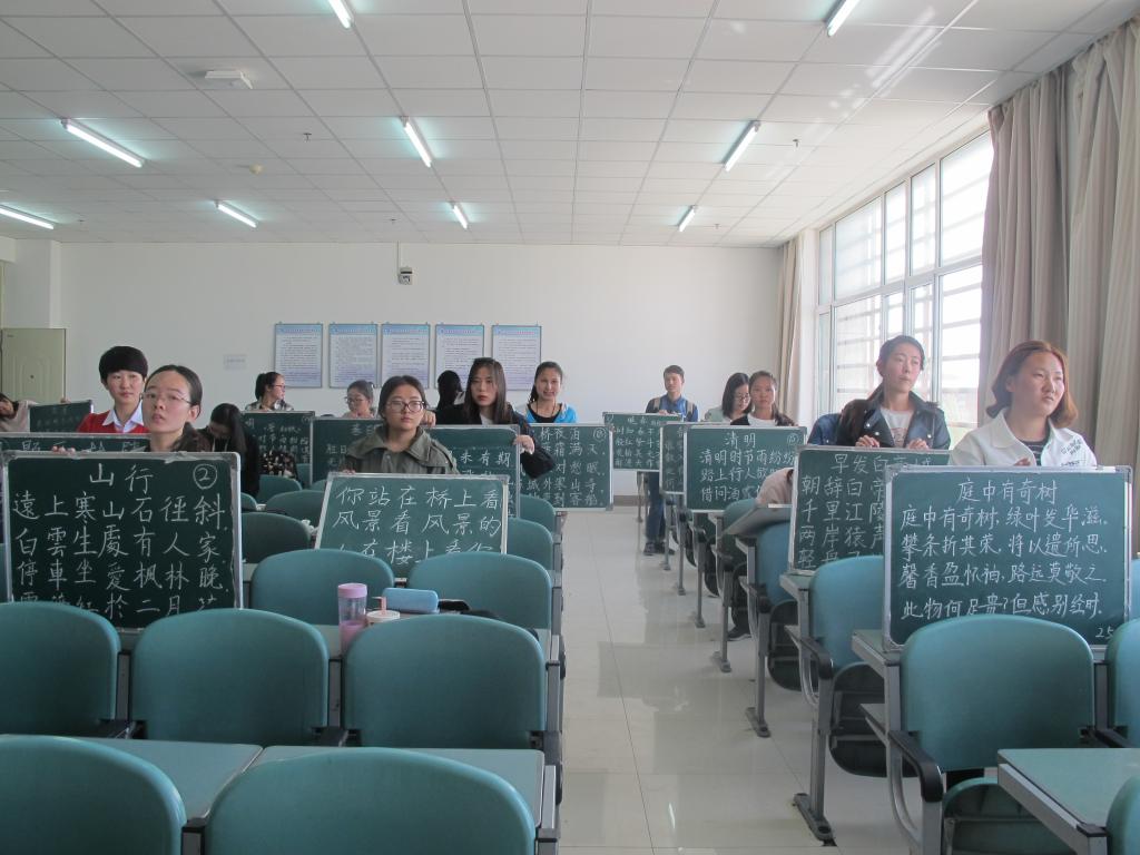 春和景明,天朗气清,为了提高师范生的专业素养和教学技能,人世界杯体育官方网站于4月26日在文科楼130教室成功举办了汉语言文学专业师范生教学技能大赛决赛。大赛特邀教育厅资深教研员李泽琪老师、教育厅教研室主任岳维鹏老师、中文系语文教育教研室赵红老师、白玉波老师和王静老师担任评委嘉宾,人世界杯体育官方网站2014级汉语言文学(师范)专业全体本科生观摩了此次比赛。