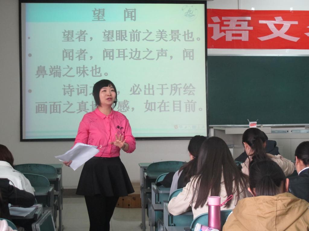 最是一年春好处,桃李夭夭柳如烟。本着“走近名师,学习经验,提升自我”的理念,人世界杯体育官方网站于4月20日上午在文科楼413教室成功举办了“语文名师大讲堂”活动。此次应邀而来的语文名师是银川九中的青年教师周燕,周燕老师在诗词教学方面独特的心得体会和自成体系的鉴赏方法,使得在座的汉语言师范本科学子和学科教学(语文)专业的研究生获益匪浅。