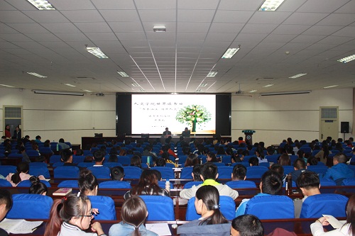 晚,人世界杯体育官方网站在贺兰山校区文科楼东侧报告厅举行了第22届世界读书日系列活动开幕式暨专题讲座。此次活动由学院党委副书记金玉河主持,院长胡玉冰主讲。学生工作办公室主任刘杰、辅导员潘巍老师、学院2015、2016级全体学生参加。