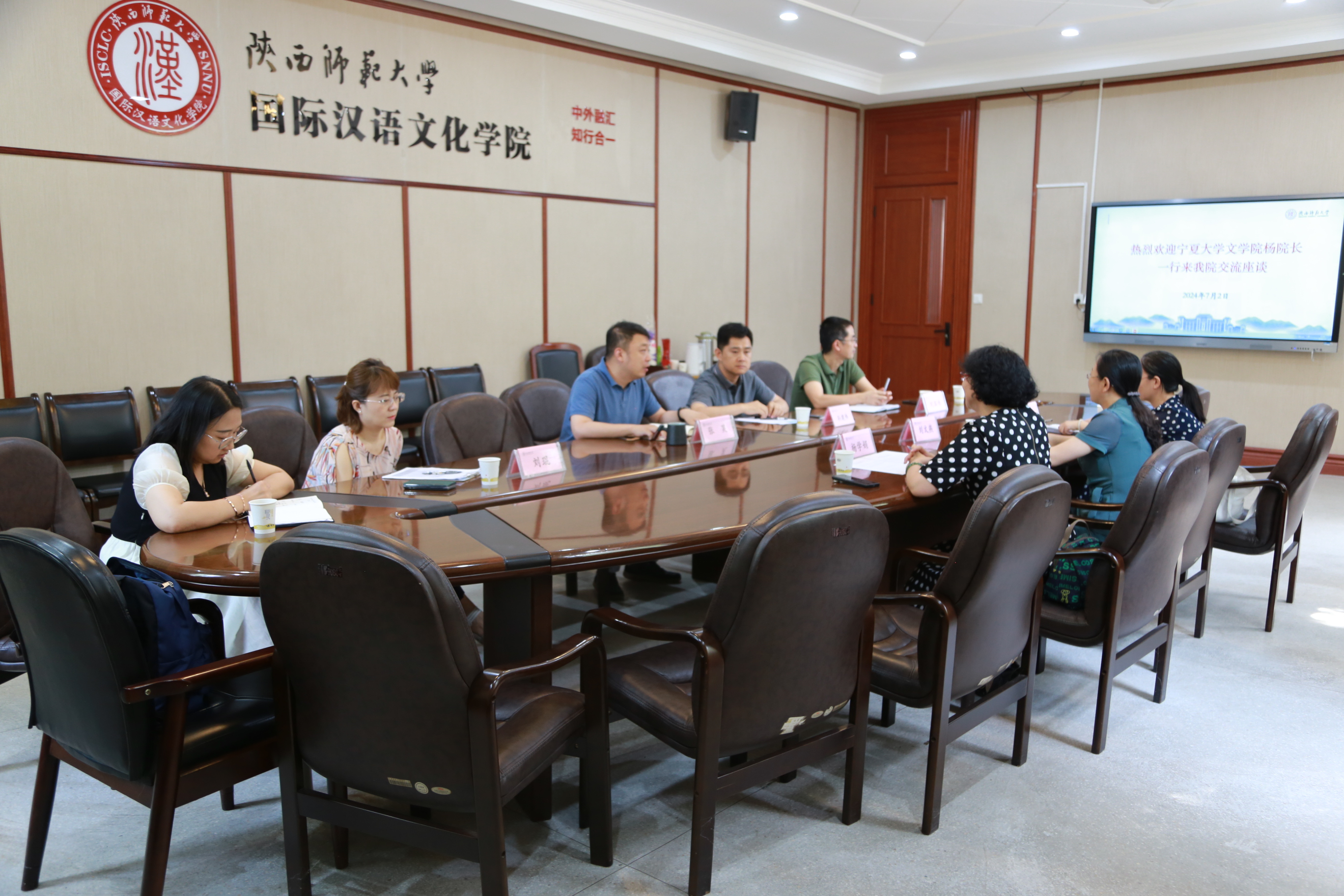 在陕西师范大学国际文化交流学院,杨学娟副书记一行与张昊副书记、孙建伟副院长,刘国伟、刘琨、翁思洁等老师等进行了深入交流。双方就本科培养方案优化、硕士生培养模式创新、国际中文教学资源建设、中华文化体验开展等方面的问题进行了探讨,陕西师范大学国际汉语文化学院的领导与专家对世界杯官网国际中文教育系的专业建设、培养方案优化、师资队伍建设等提出了许多建设性的意见和建议。双方一致认为:两院在留学生类型上存在相似性,培养方面有诸多共性,也存在一些特性,两院作为对口合作高校下的二级教学科研单位应积极落实两校签署的第二轮对口合作协议,进一步加强交流,寻求合作,共同进步。